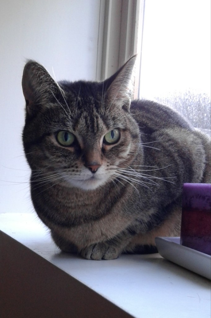 Sheya was pensively perched in the bedroom window. Neither of our kitties are fond of company.