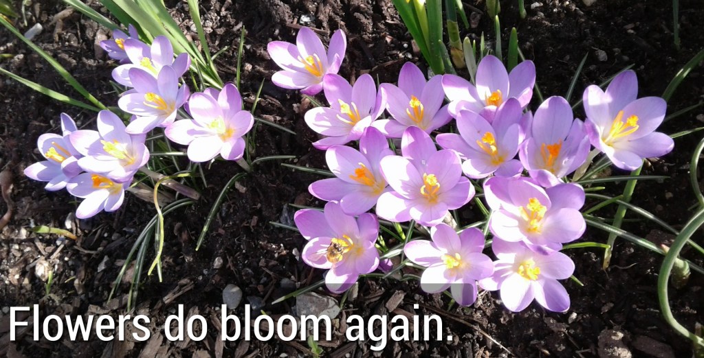 Flowers indeed do bloom again, the mourning turns to dancing and His mercies are new every morning. Blessings and thanks for the lovely poem, Tina